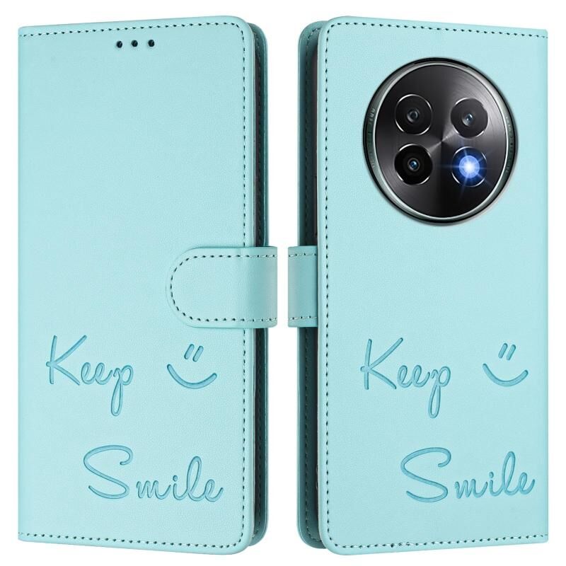 Για Realme 13+ 5G Global Smile Ανάγλυφο RFID δερμάτινη θήκη τηλεφώνου (πράσινο χρώμα)
