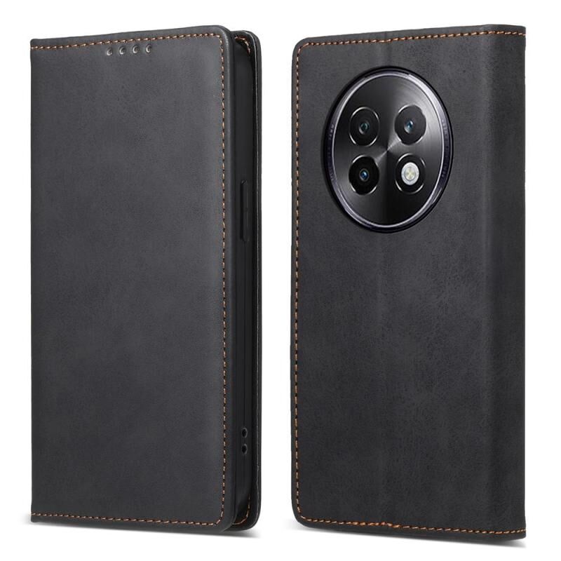 For Realme 13+ Business Solid Color Magnetic RFID Leather Phone Case(Black)
