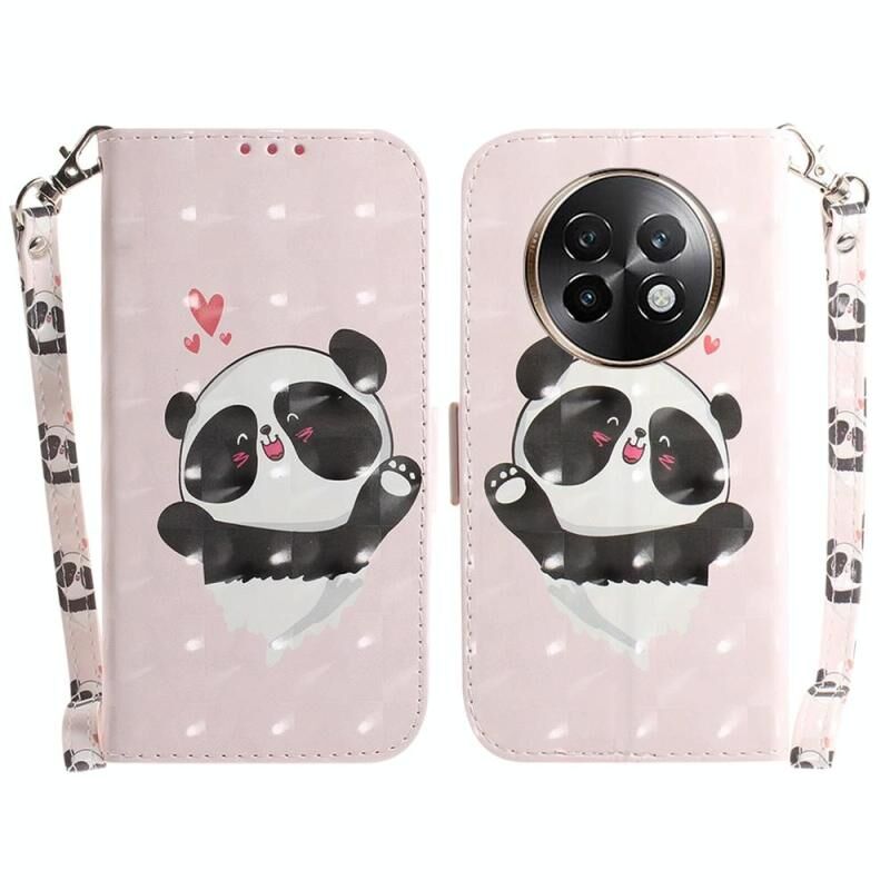 Θήκη τηλεφώνου δερμάτινη, οριζόντια, αναδιπλούμενη, με έγχρωμο 3D σχέδιο για Realme 13+ Global (Heart Panda)