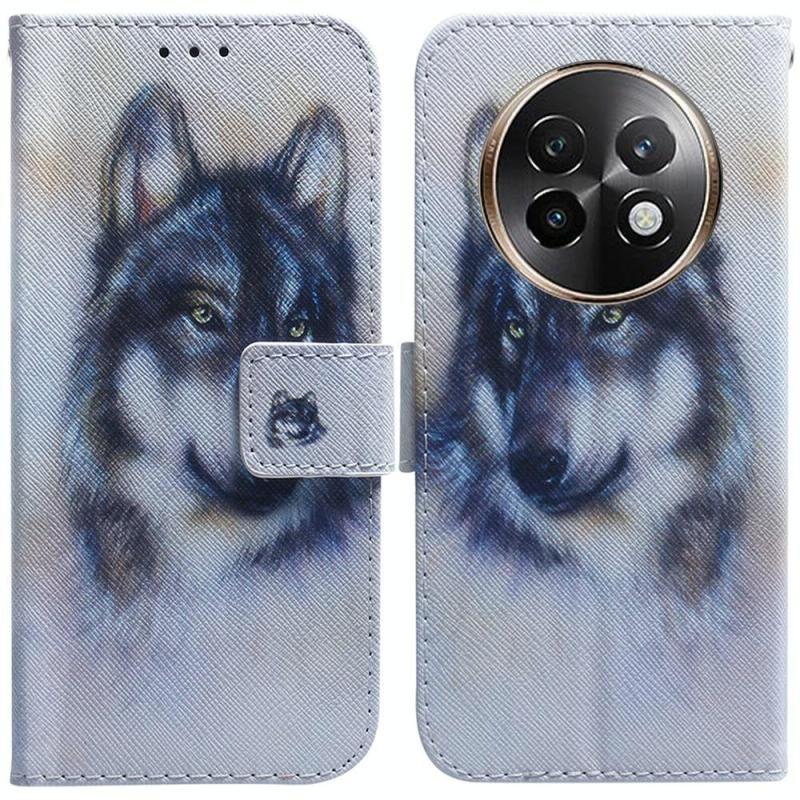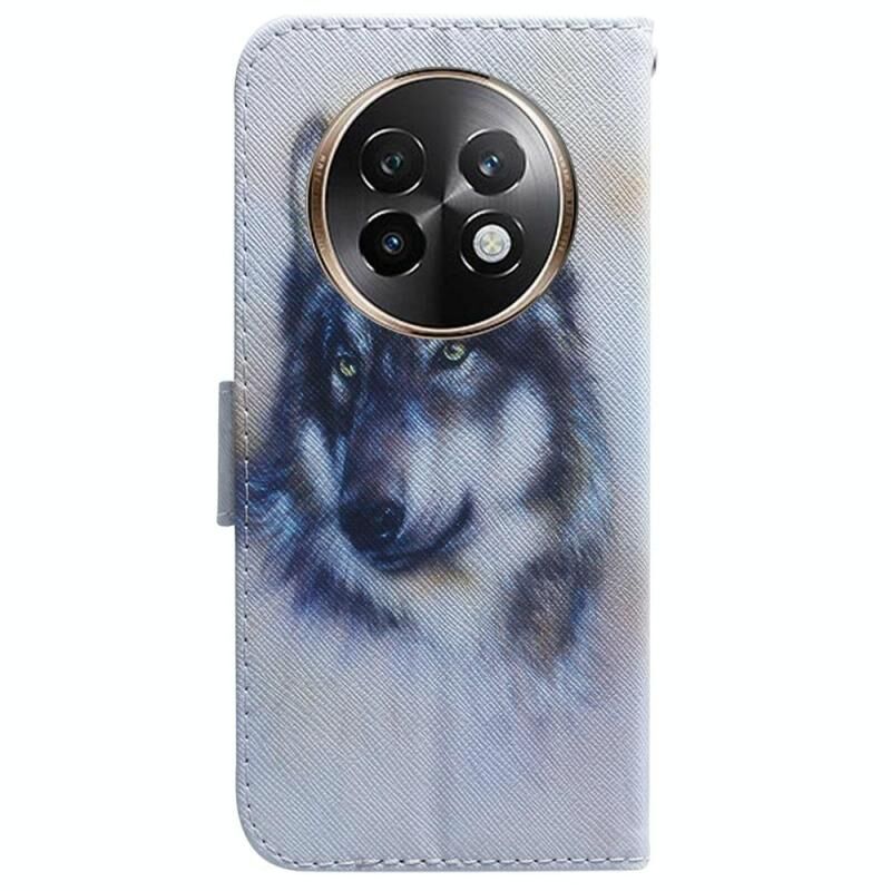 Θήκη τηλεφώνου από δέρμα με σχέδιο flip και πολύχρωμη ζωγραφική για Realme 13+ Global (Λευκός Λύκος)