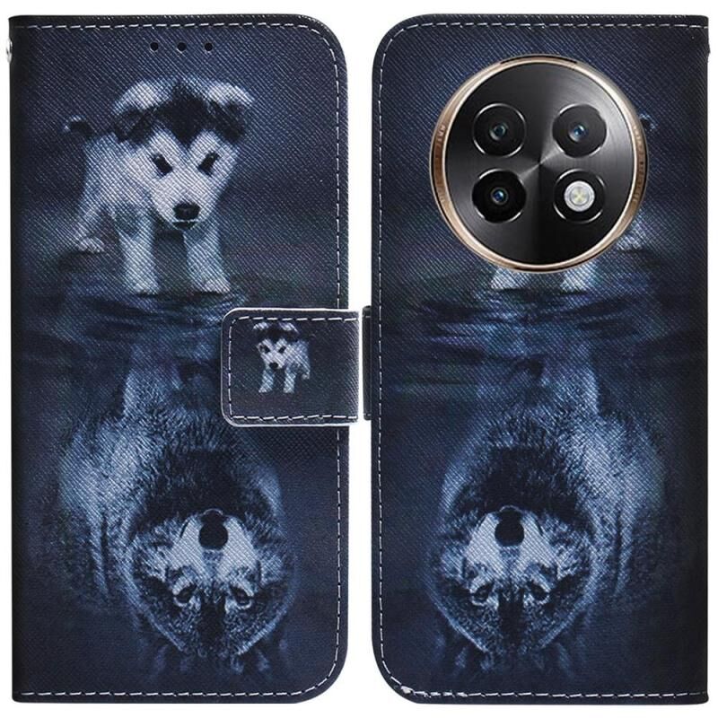 Θήκη τηλεφώνου από δέρμα με σχέδιο flip και πολύχρωμη ζωγραφική για Realme 13+ (Λύκος και Σκύλος)