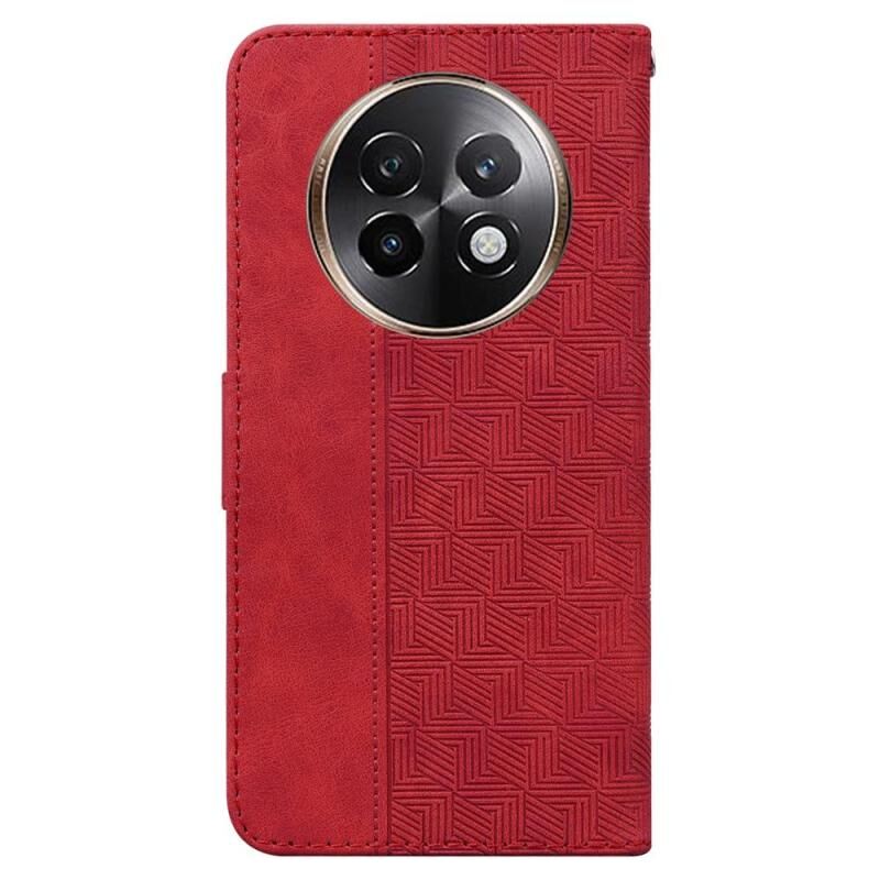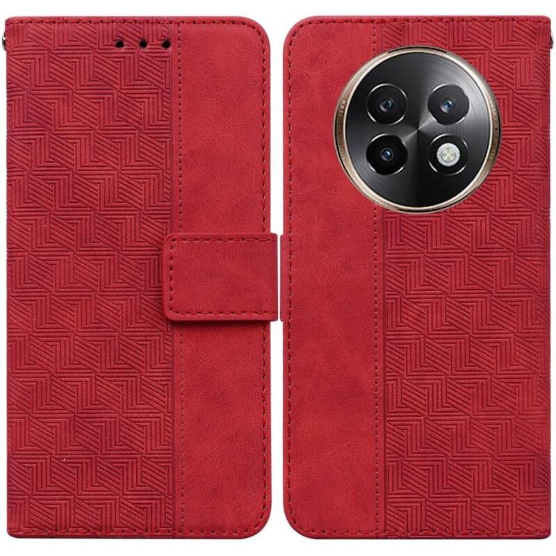 Για Realme 13+ Παγκόσμια γεωμετρική ανάγλυφη δερμάτινη θήκη τηλεφώνου (κόκκινο)