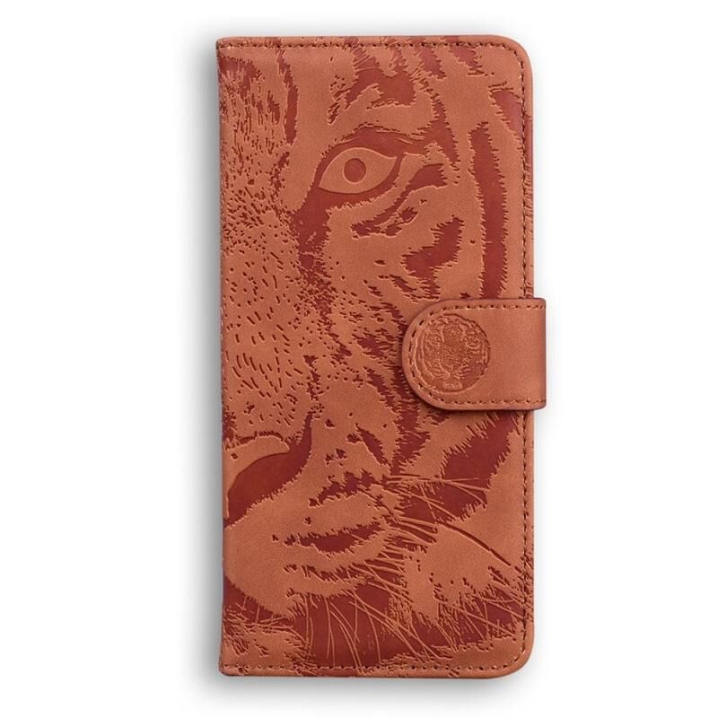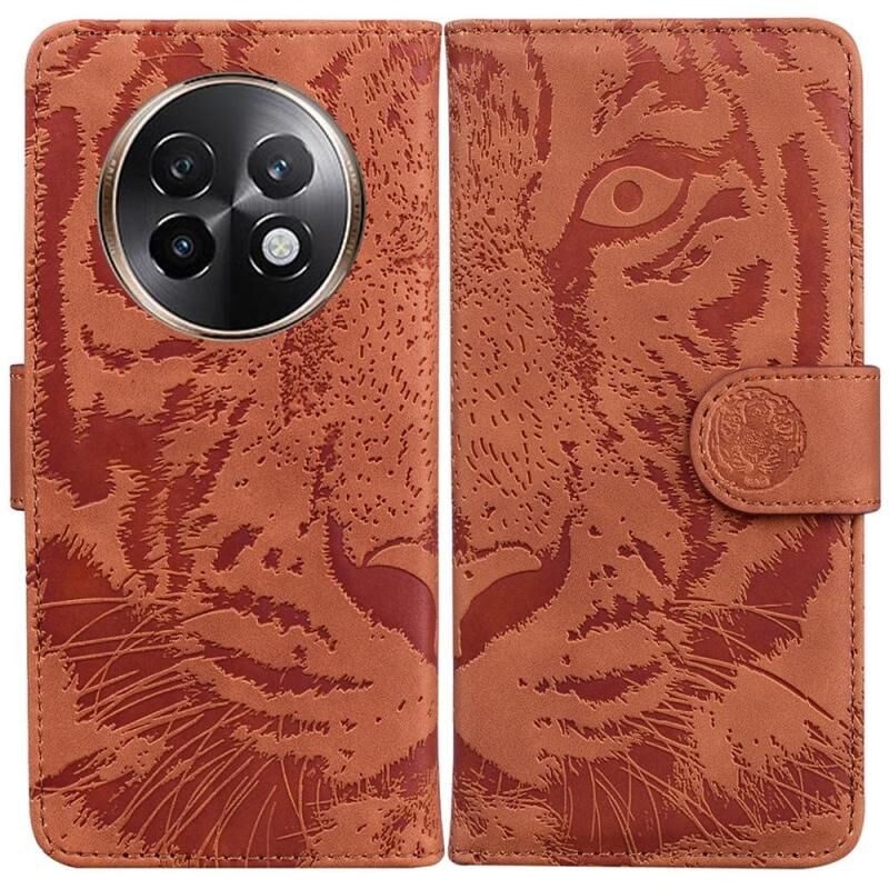 For Realme 13+ Global Tiger Embossing Pattern Flip Leather Phone Case(Brown)