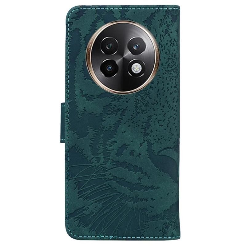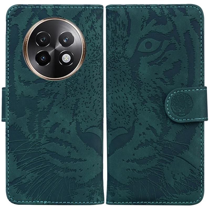 For Realme 13+ Global Tiger Embossing Pattern Flip Leather Phone Case(Green)