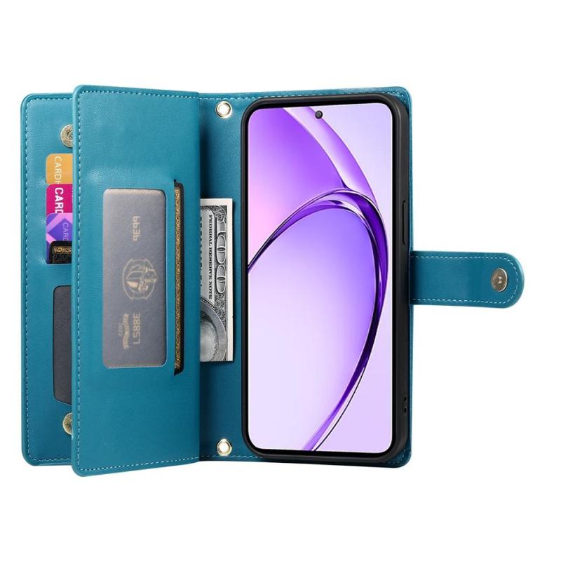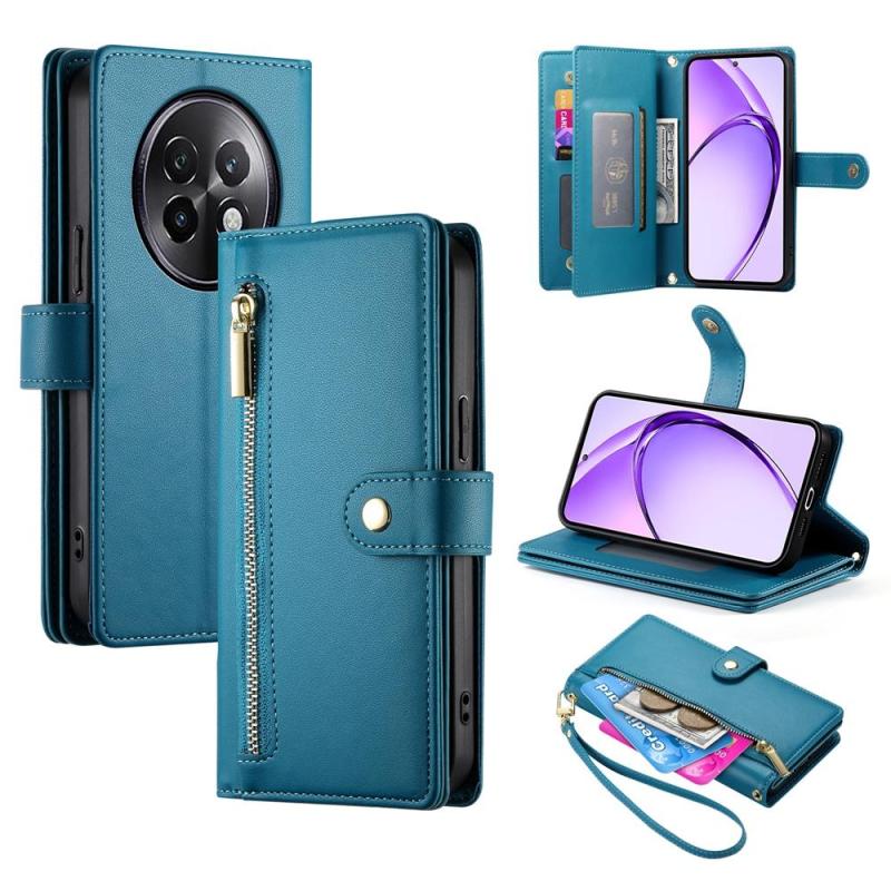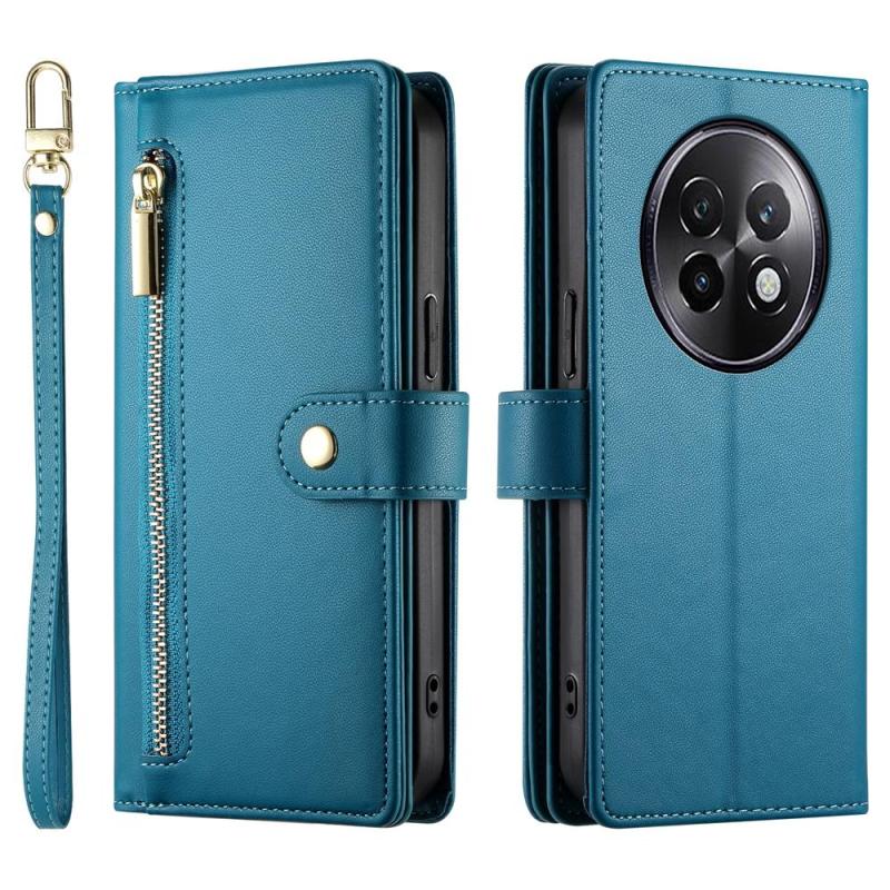 For Realme 13+ Nine Card-slot Zipper Wallet Bag Leather Phone Case(Blue)