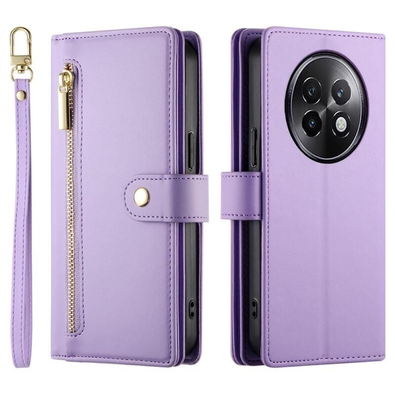 For Realme 13+ Nine Card-slot Zipper Wallet Bag Leather Phone Case(Purple)