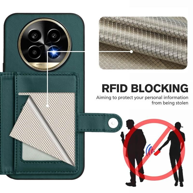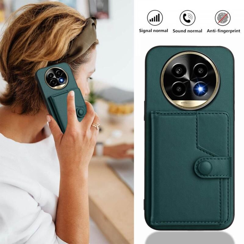 For Realme 13 Pro / 13 Pro+ 5G Button Card Bag RFID Anti-theft Phone Case(Green)