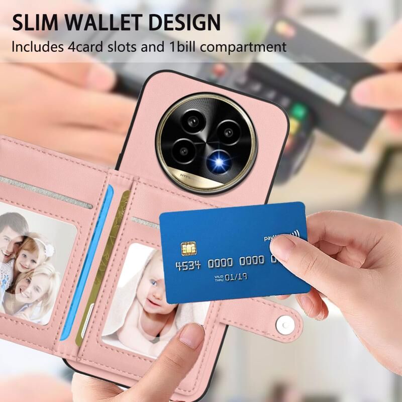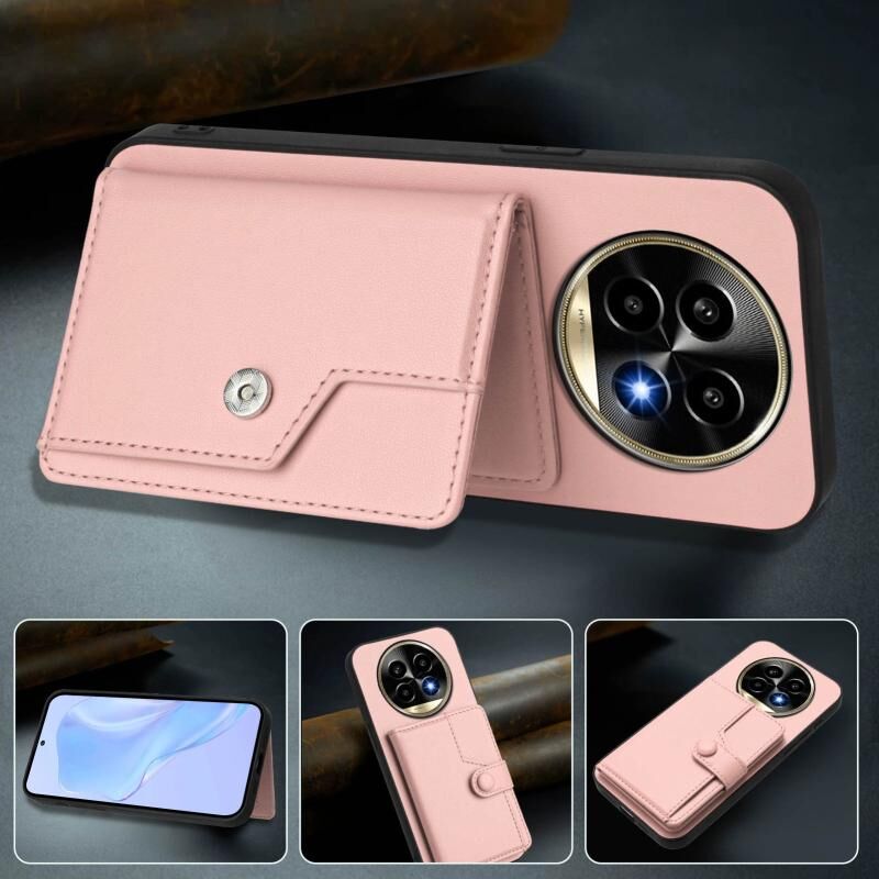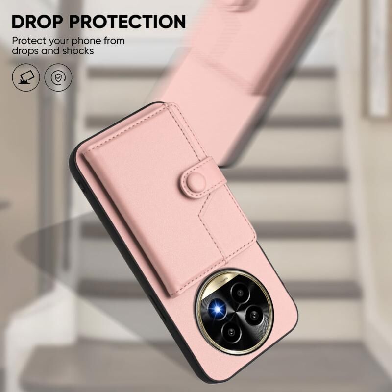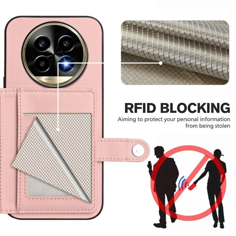 For Realme 13 Pro / 13 Pro+ 5G Button Card Bag RFID Anti-theft Phone Case(Pink)