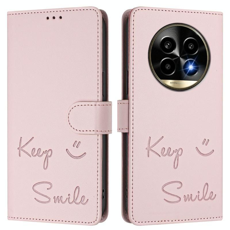 Για Realme 13 Pro / 13 Pro + 5G Smile ανάγλυφη RFID δερμάτινη θήκη τηλεφώνου (ροζ)