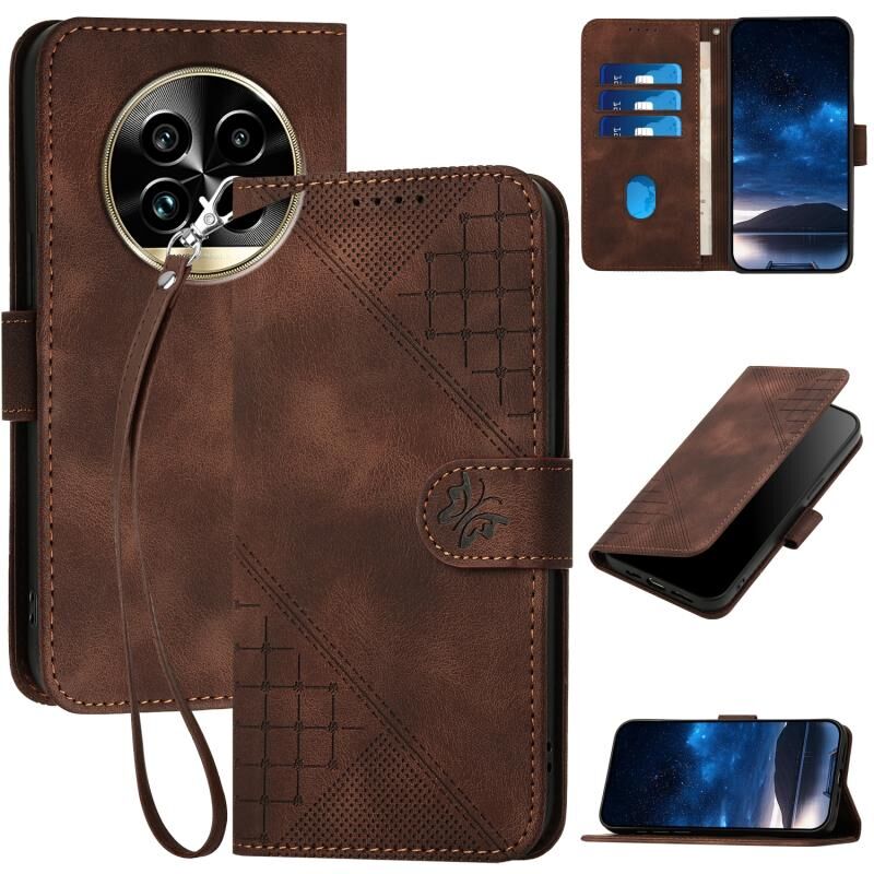 For Realme 13 Pro / 13 Pro+ Global Grid Butterfly Embossed Pattern Leather Phone Case with Lanyard(Coffee)