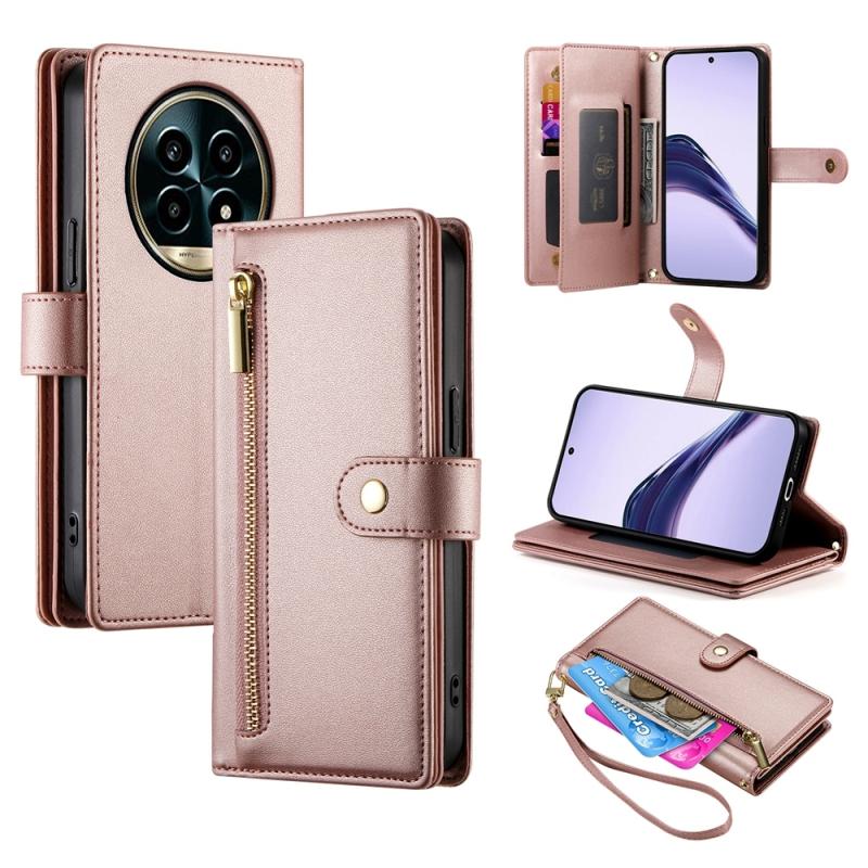 For Realme 13 Pro / 13 Pro+ Global Nine Card-slot Zipper Wallet Bag Leather Phone Case(Pink)