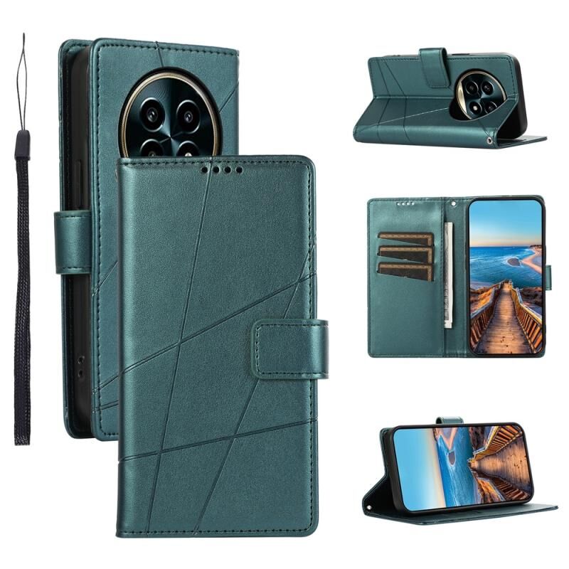 For Realme 13 Pro / 13 Pro+ Global PU Genuine Leather Texture Embossed Line Phone Case(Green)