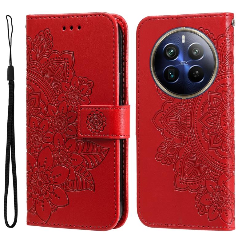 For Realme 13 Pro / 13 Pro+ / P1 Pro Global Seven-petal Flowers Embossing Leather Phone Case(Red)