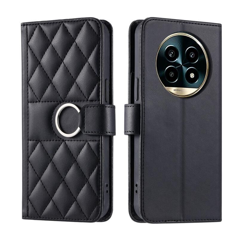 For Realme 13 Pro+ 5G Global Ring Buckle Rhombic Leather Phone Case(Black)