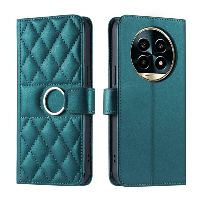 For Realme 13 Pro+ 5G Global Ring Buckle Rhombic Leather Phone Case(Green)