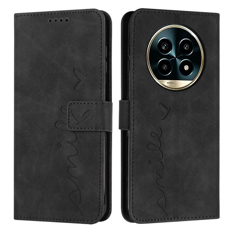 Για Realme 13 Pro + 5G Global Skin Feel Heart ανάγλυφη δερμάτινη θήκη τηλεφώνου (Μαύρο)