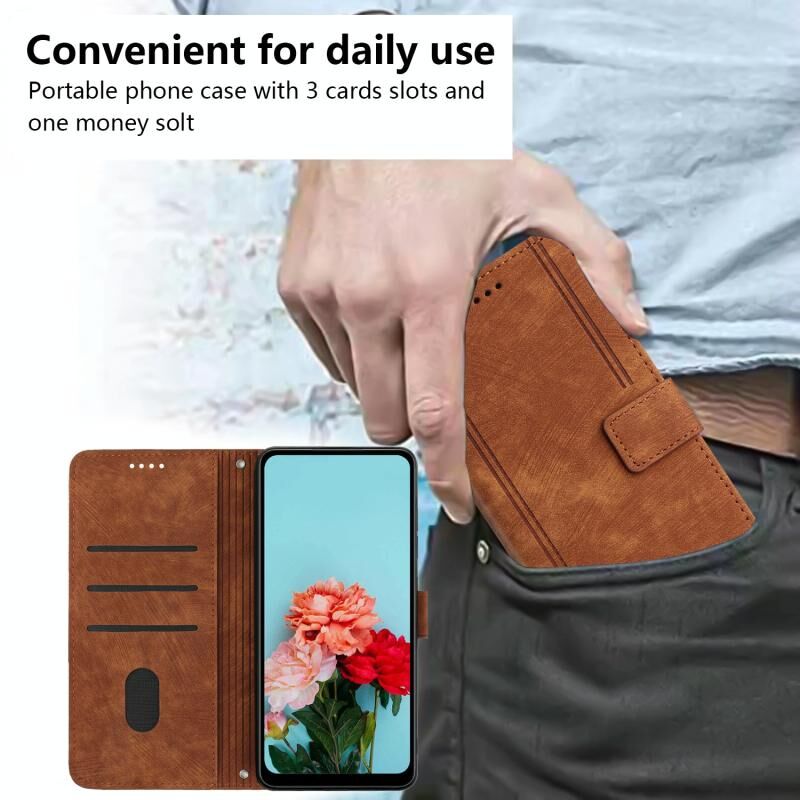Για Realme 13 Pro + 5G Global Skin Feel Stripe Pattern δερμάτινη θήκη τηλεφώνου (καφέ)