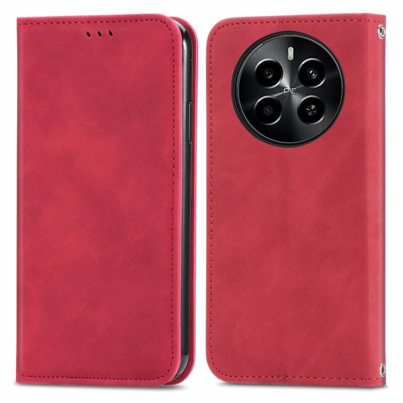 Για Realme 13 Pro Ρετρό δέρμα αίσθηση μαγνητική Flip δέρμα τηλέφωνο υπόθεση (κόκκινο)