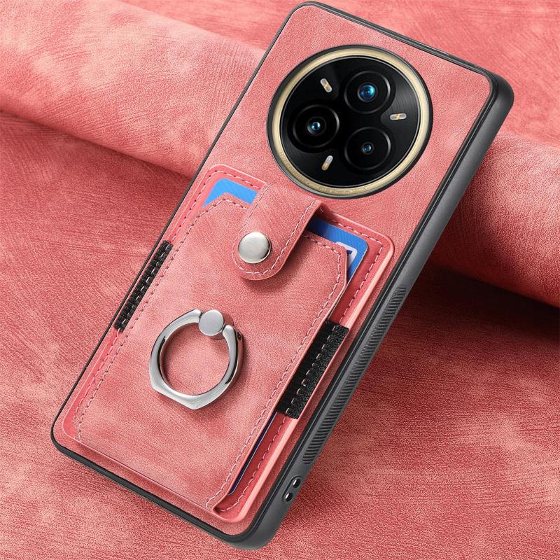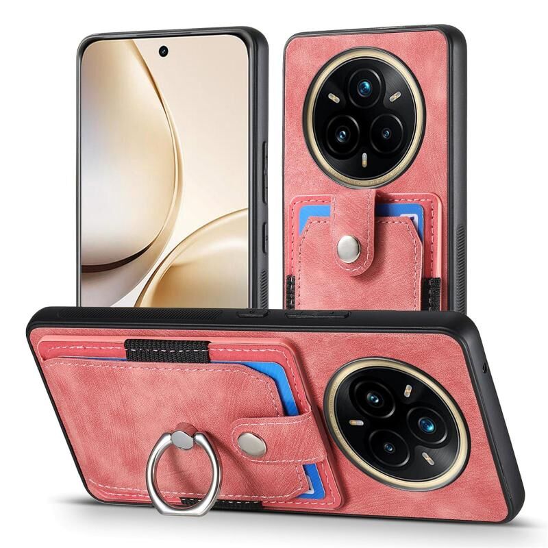 For Realme 13 Pro Retro Skin-feel Ring Card Wallet Phone Case(Pink)