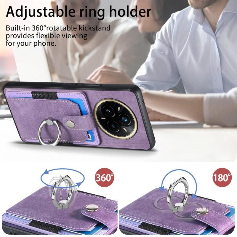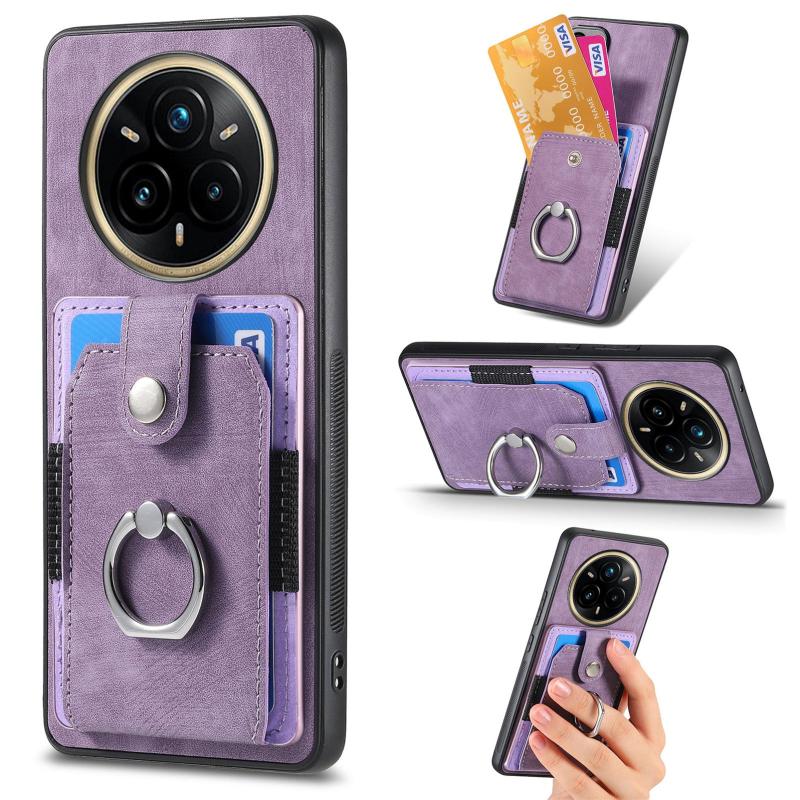 For Realme 13 Pro Retro Skin-feel Ring Card Wallet Phone Case(Purple)