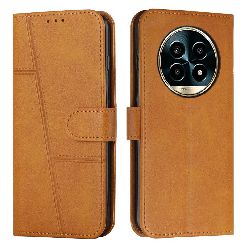 For Realme 13 Pro+ Stitching Calf Texture Buckle Leather Phone Case(Yellow)