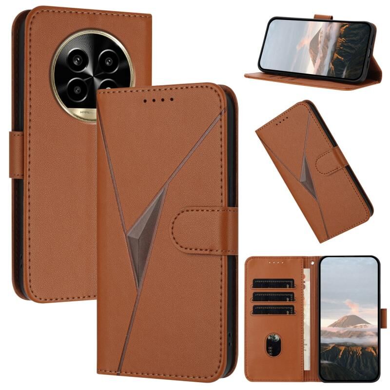 Για Realme 13 Pro Τρίγωνο μοτίβο αγκράφα κούμπωμα δερμάτινη θήκη τηλεφώνου (καφέ)