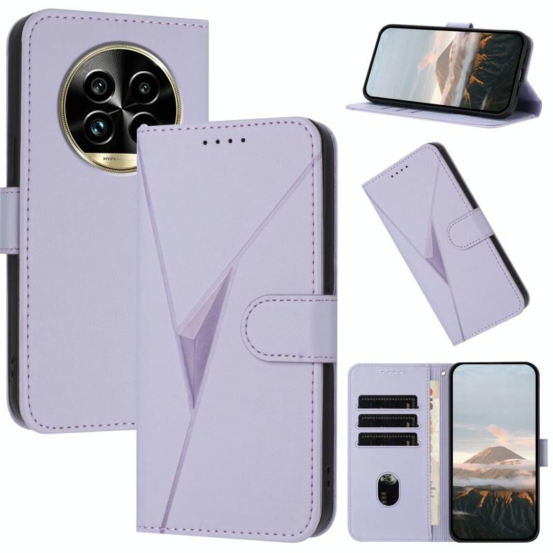 Για Realme 13 Pro + Τρίγωνο μοτίβο αγκράφα κούμπωμα δερμάτινη θήκη τηλεφώνου (Light Purple)