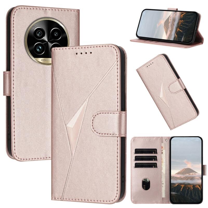 Για Realme 13 Pro + Τρίγωνο μοτίβο αγκράφα κούμπωμα δερμάτινη θήκη τηλεφώνου (Rose Gold)