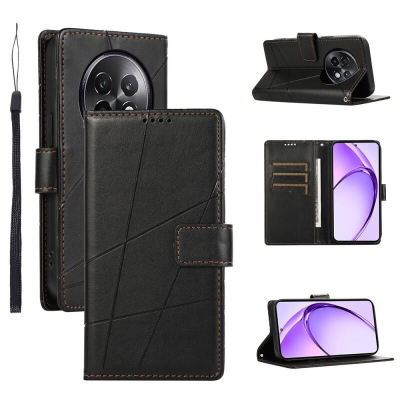 For Realme 13+ PU Genuine Leather Texture Embossed Line Phone Case(Black)