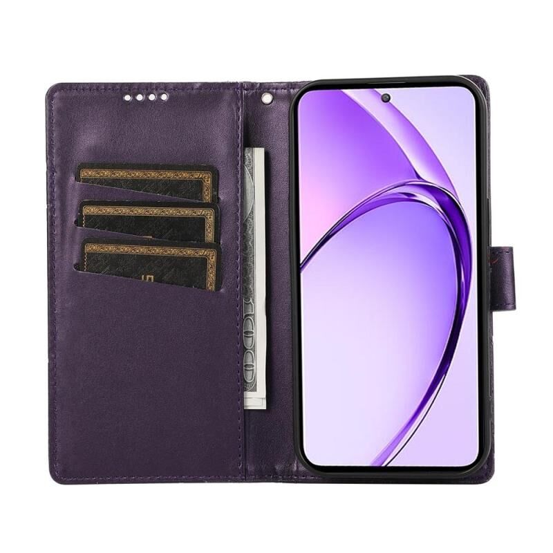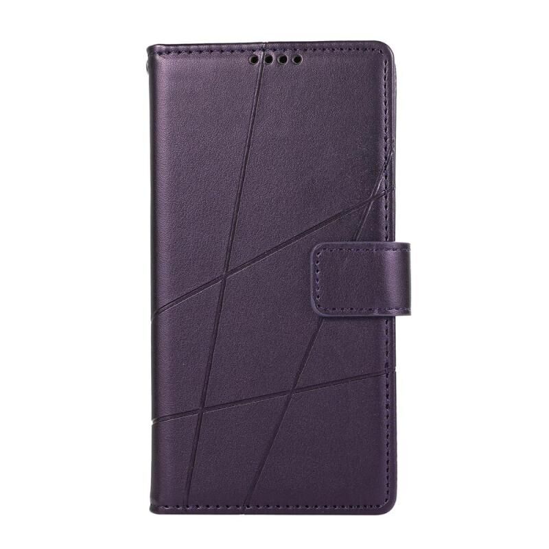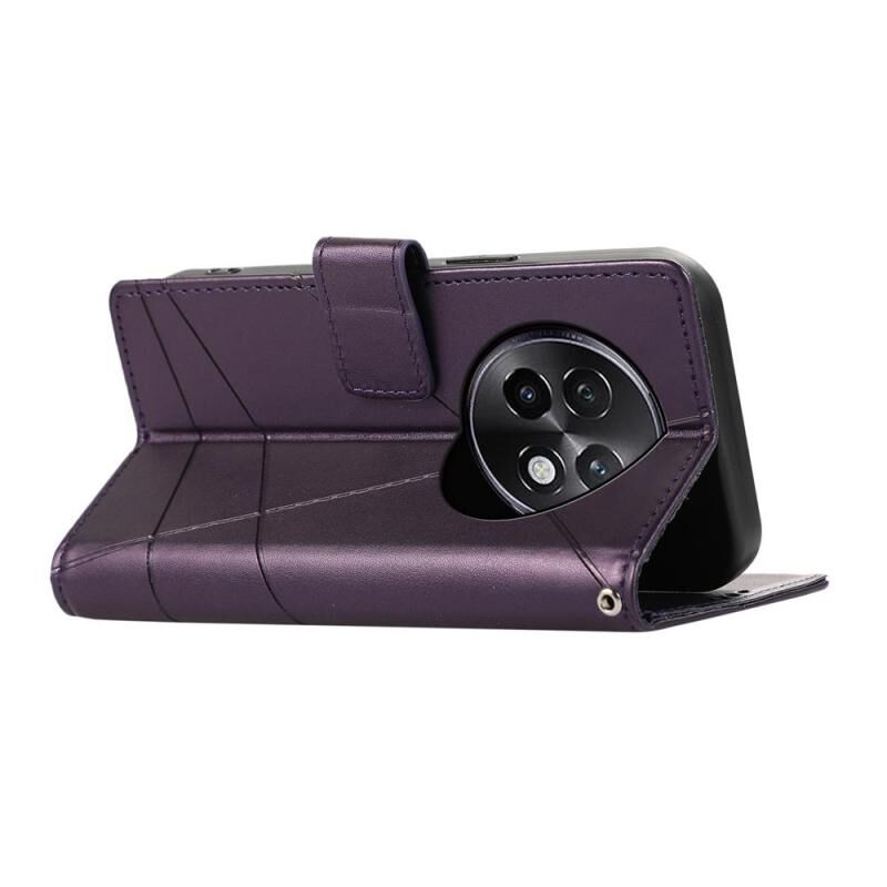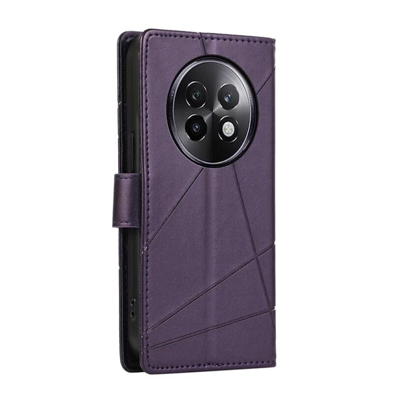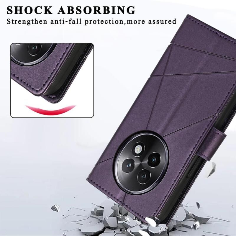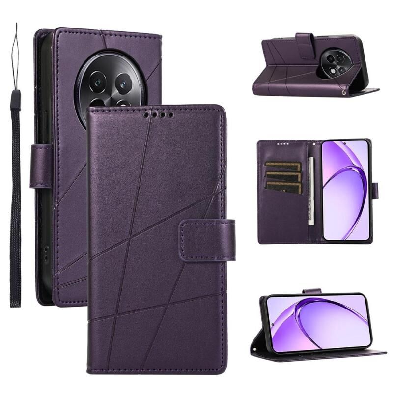 For Realme 13+ PU Genuine Leather Texture Embossed Line Phone Case(Purple)