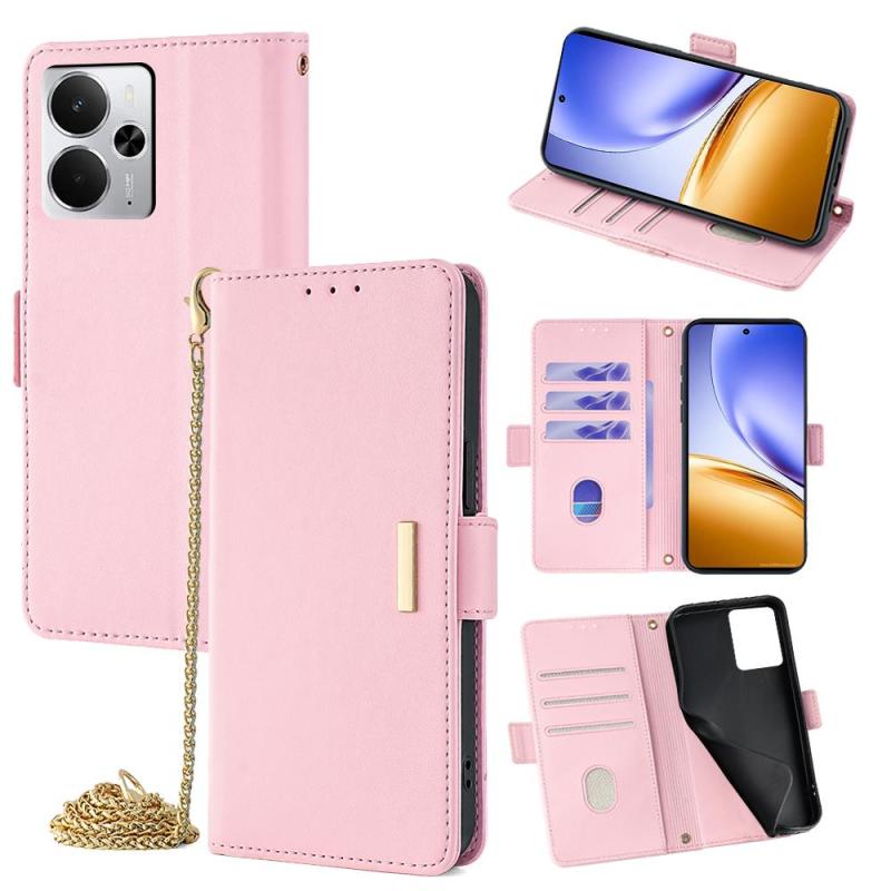 For Realme 14 5G Global Crossbody Chain Leather Phone Case(Pink)