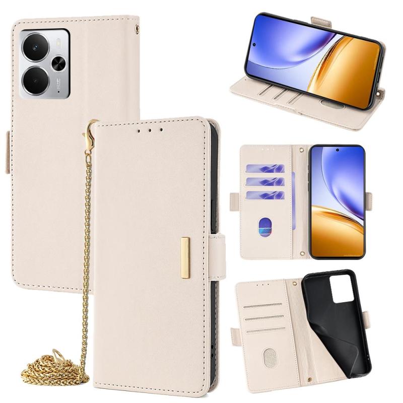 For Realme 14 5G Global Crossbody Chain Leather Phone Case(White)