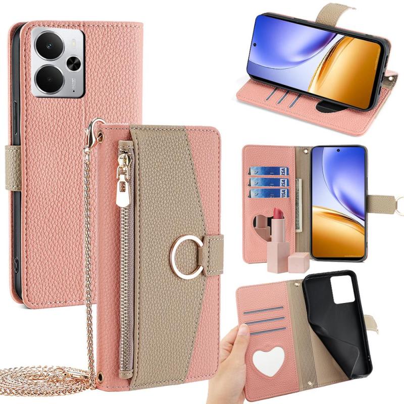 For Realme 14 5G Global Crossbody Litchi Texture Leather Phone Case(Pink)