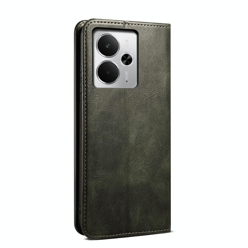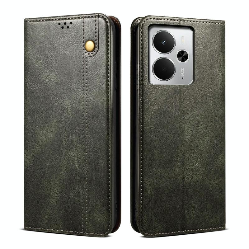 Θήκη τηλεφώνου από δέρμα με υφή Crazy Horse και λάδι για Realme 14 5G Global (Πράσινο)