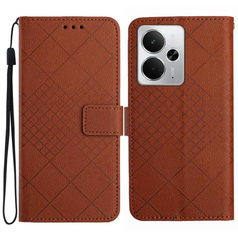 For Realme 14 5G Global / P3 5G Global Rhombic Grid Texture Leather Phone Case(Brown)
