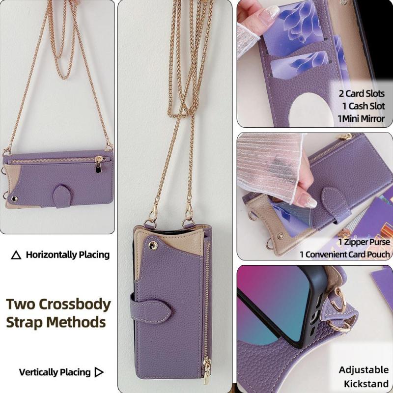 7. Built-in Oval Stainless Steel Makeup Mirror: A durable, scratch-resistant oval mirror inside the phone case for easy makeup touch-ups on the go.