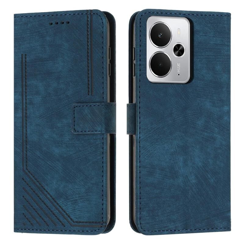 For Realme 14 / P3 5G / 14T 5G Skin Feel Stripe Pattern Leather Phone Case with Lanyard(Blue)