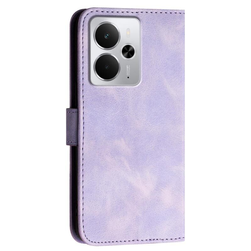 For Realme 14 / P3 5G Global Grid Butterfly Embossed Pattern Leather Phone Case with Lanyard(Light Purple)