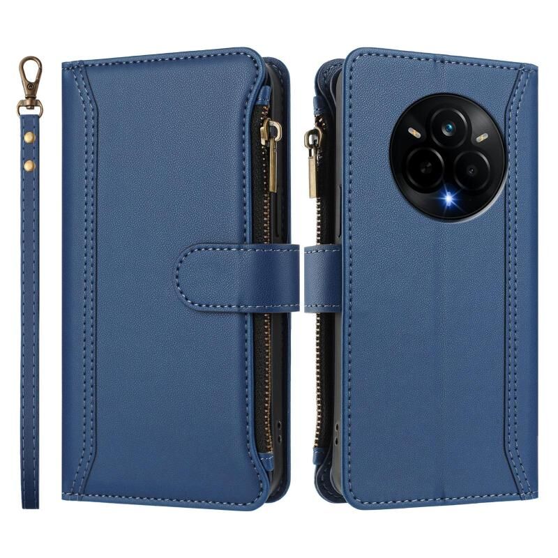 For Realme 14 Pro 5G India Magnetic Closure 9 Card Slots Zipper Leather Case with Hand Strap(Dark Blue)