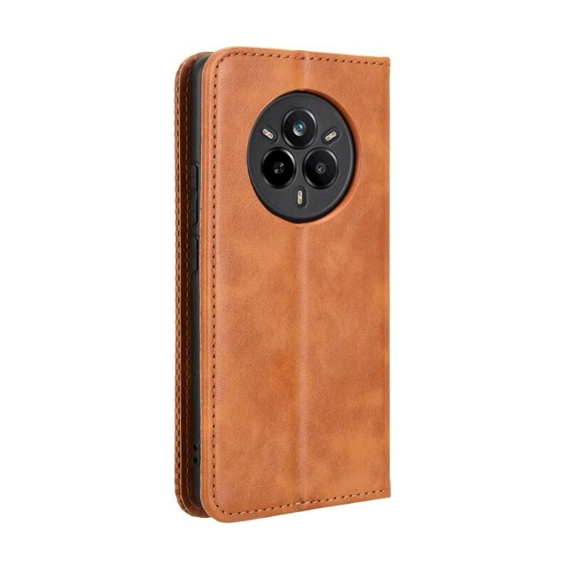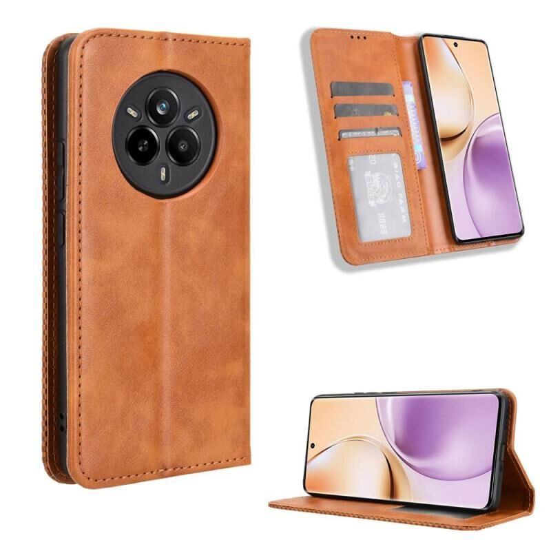 For Realme 14 Pro 5G Magnetic Buckle Retro Texture Leather Phone Case(Brown)