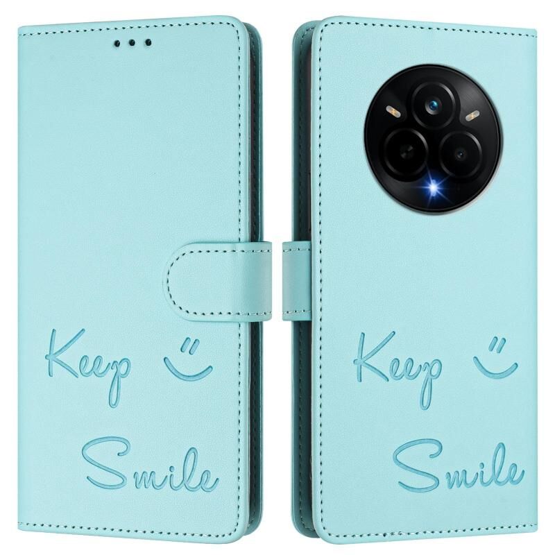 Θήκη τηλεφώνου Realme 14 Pro 5G από δέρμα με ανάγλυφο χαμόγελο και τεχνολογία RFID (Μέντας Πράσινο)
