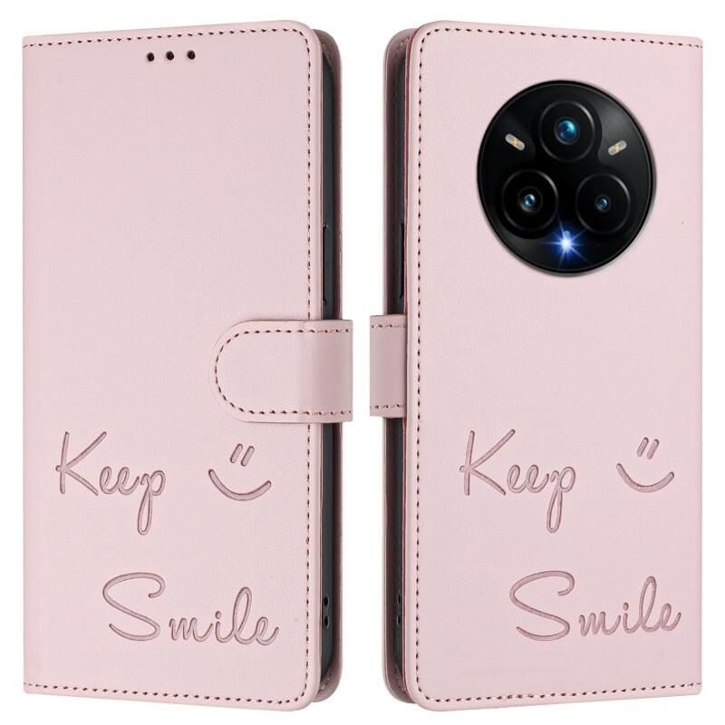 Θήκη τηλεφώνου Realme 14 Pro+ 5G από δέρμα με ανάγλυφο χαμόγελο και τεχνολογία RFID (Μέντας Πράσινο)