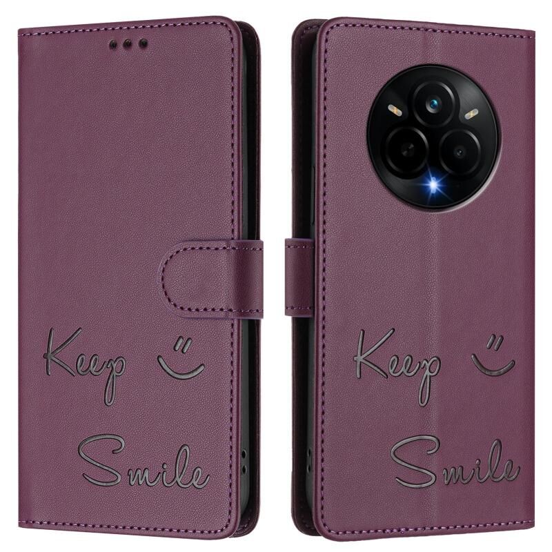 Θήκη τηλεφώνου Realme 14 Pro 5G από δέρμα με ανάγλυφο χαμόγελο και τεχνολογία RFID (Βιολετί)