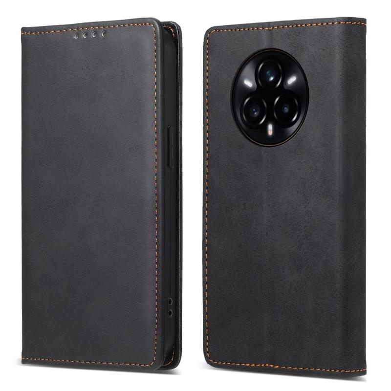 For Realme 14 Pro+ Business Solid Color Magnetic RFID Leather Phone Case(Black)