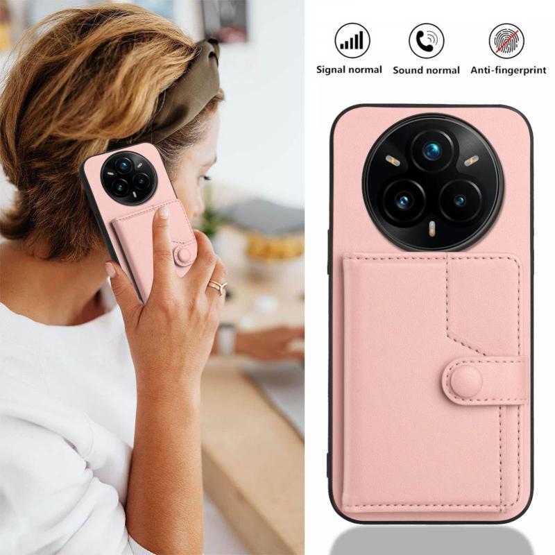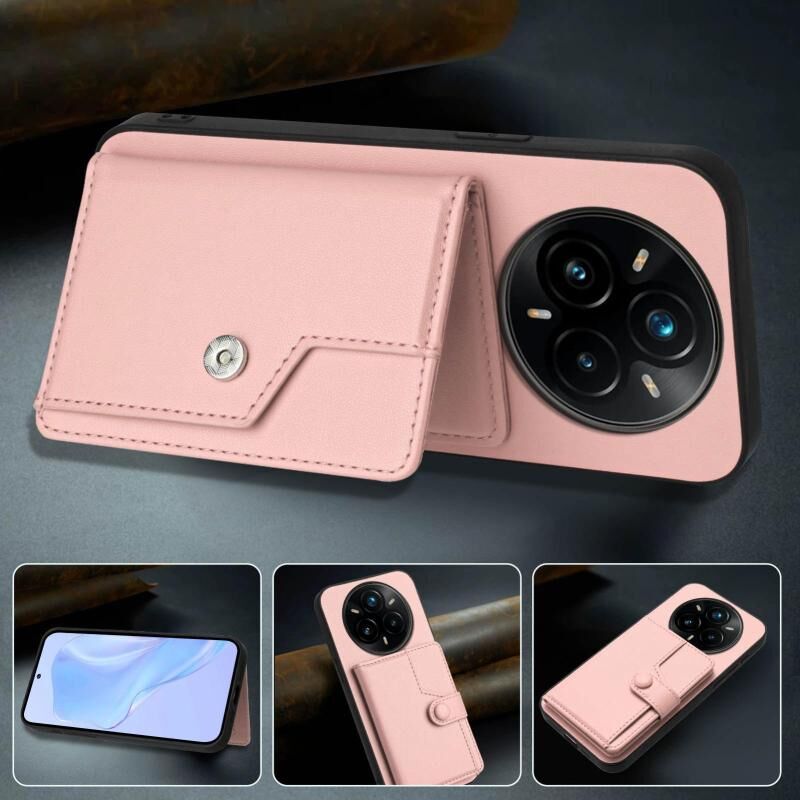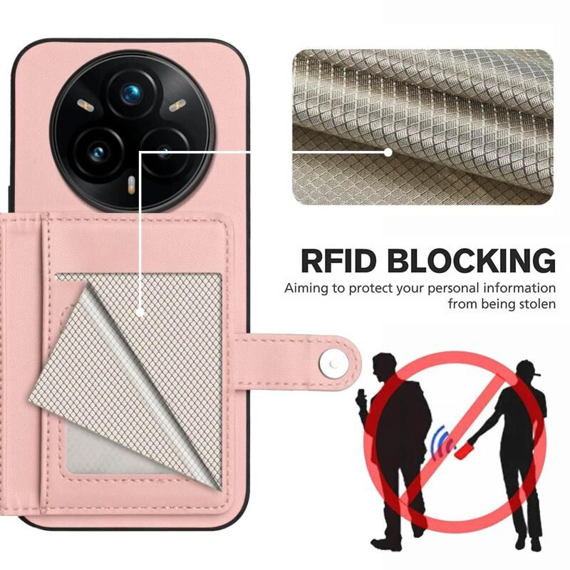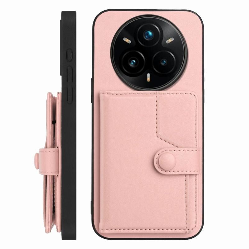 For Realme 14 Pro+ Button Card Bag RFID Anti-theft Phone Case(Pink)