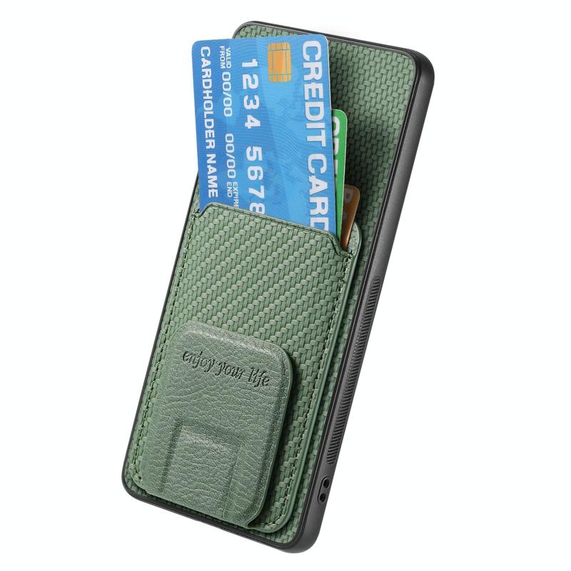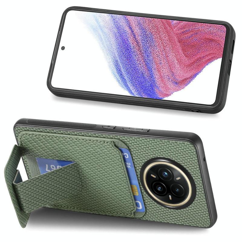 Θήκη για Realme 14 Pro από ανθρακονήματα με θήκη καρτών & βάση στήριξης (Πράσινο)