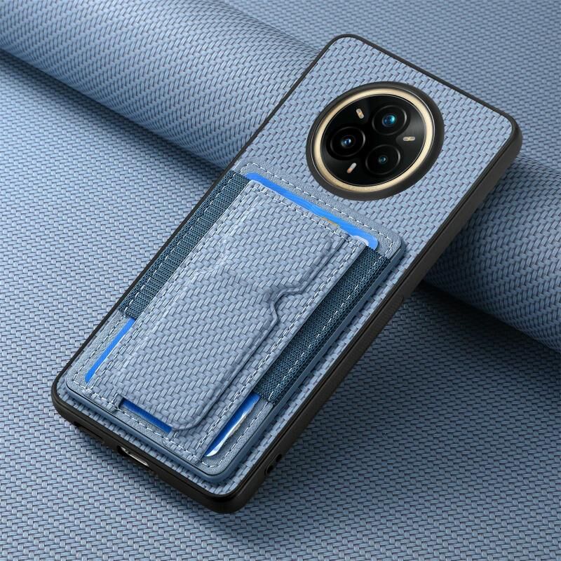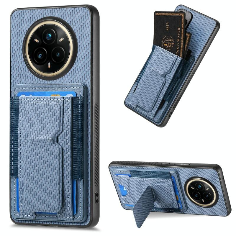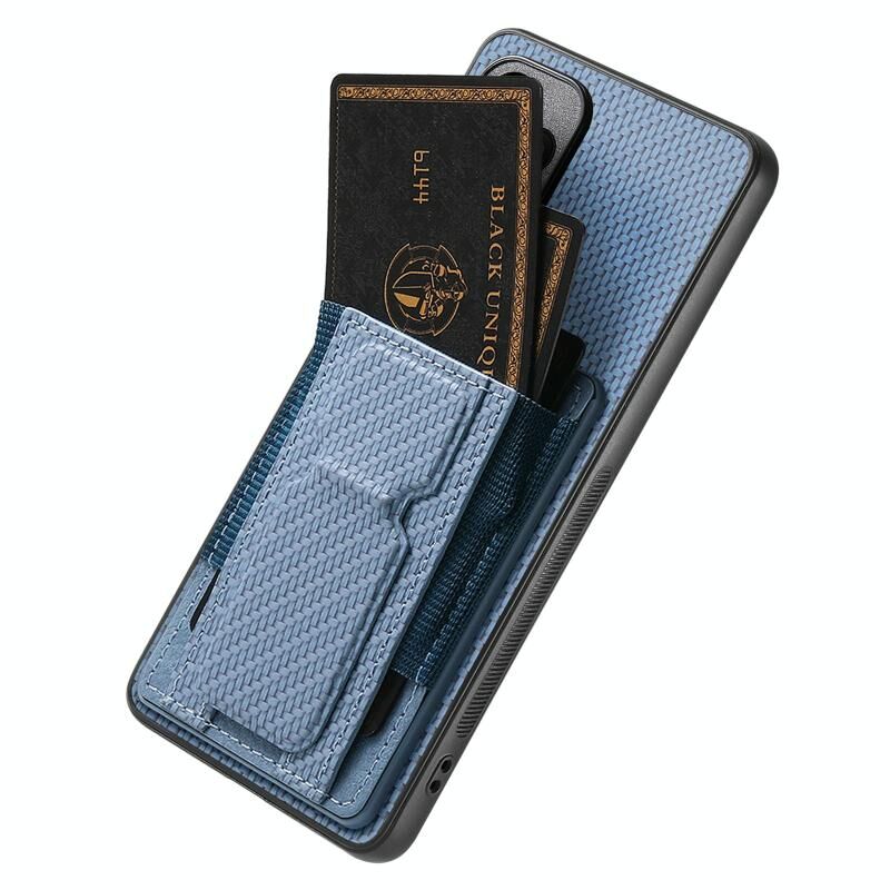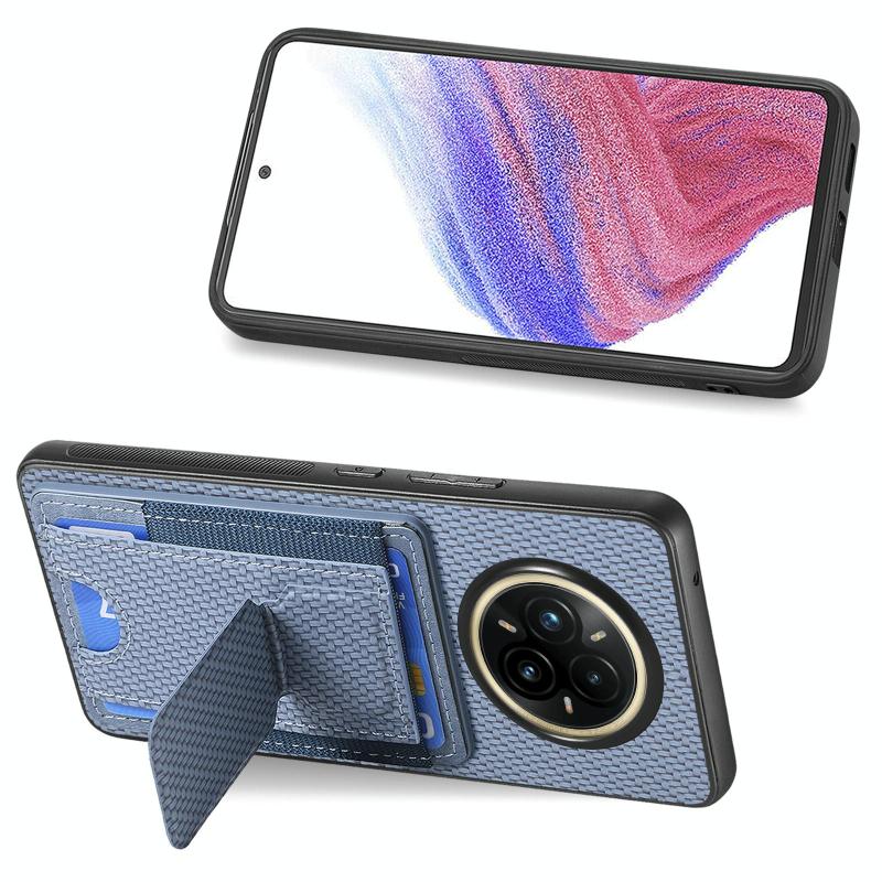 Θήκη Realme 14 Pro Carbon Fiber με Στήριξη & Θήκη Κάρτας (Μπλε)
