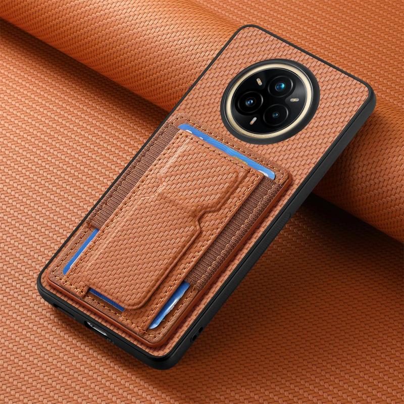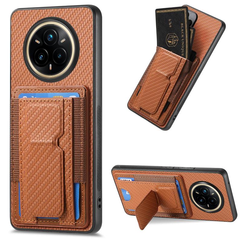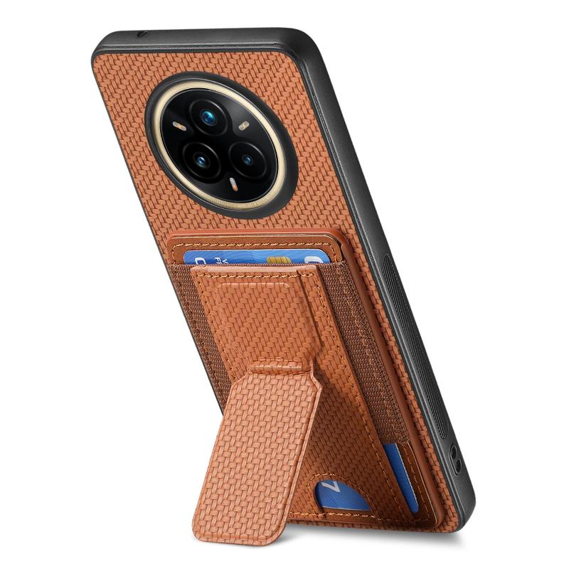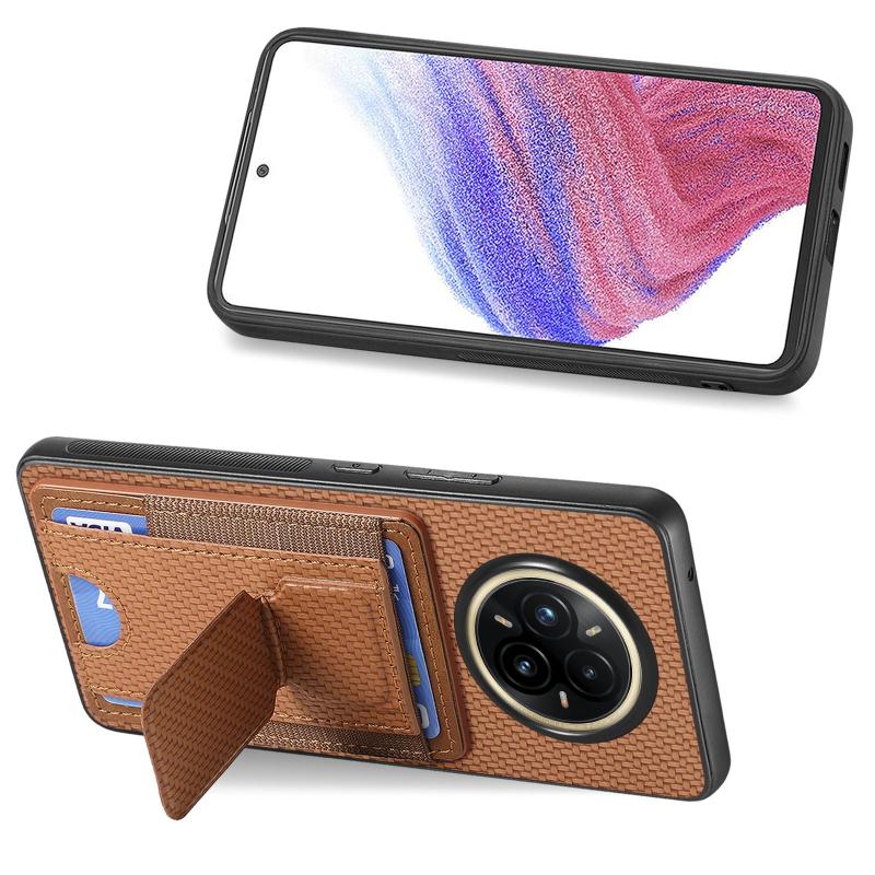 Θήκη Realme 14 Pro Carbon Fiber με Στήριξη & Θήκη Κάρτας (Καφέ)