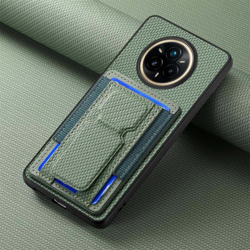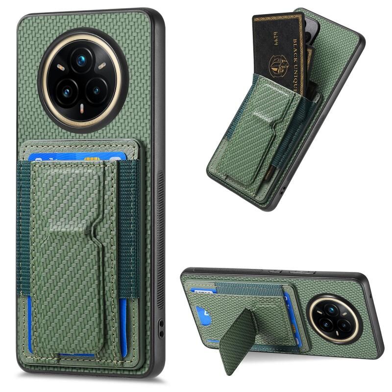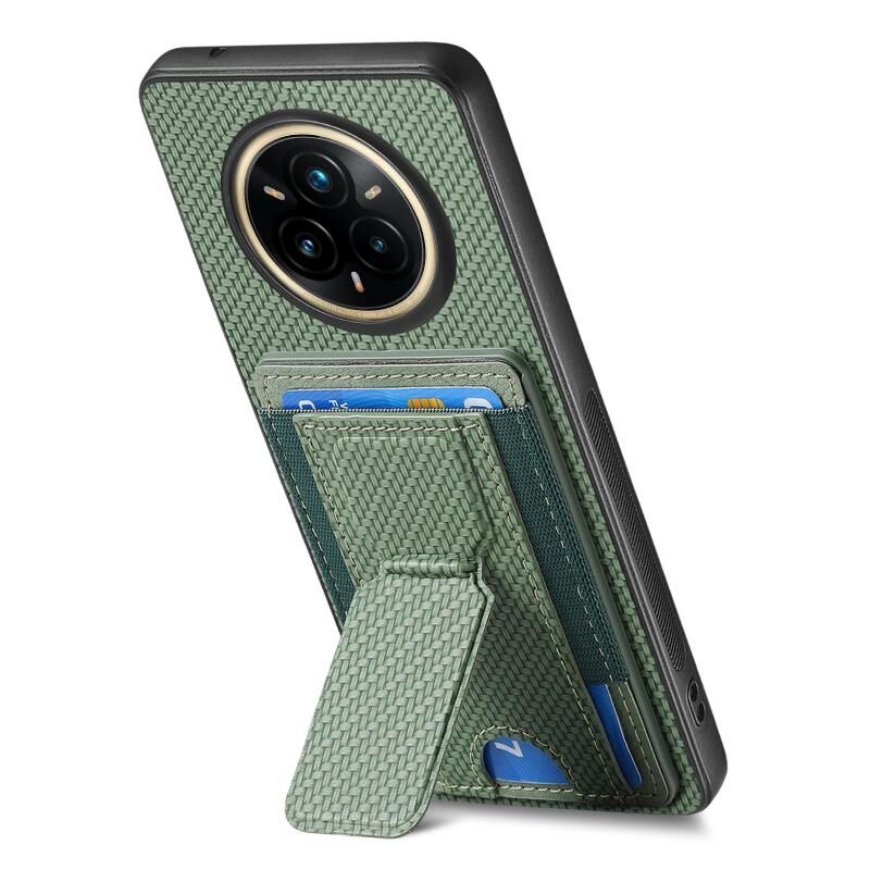 Θήκη Realme 14 Pro+ Carbon Fiber με Στήριξη & Θήκη Κάρτας (Πράσινο)