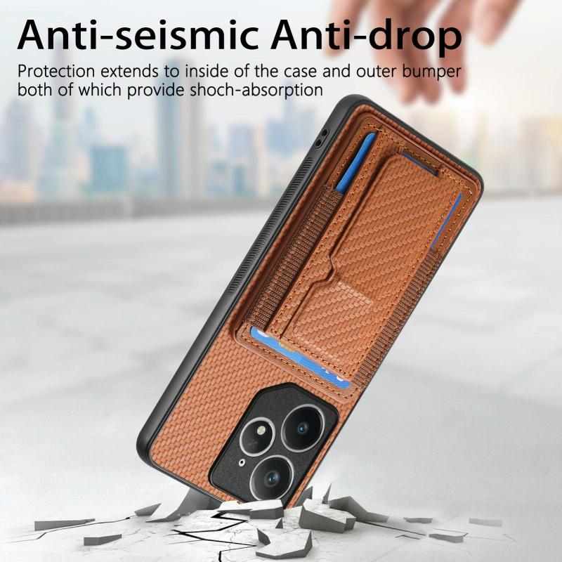 Θήκη Realme 14 Pro Carbon Fiber με Στήριξη & Θήκη Κάρτας (Χακί)